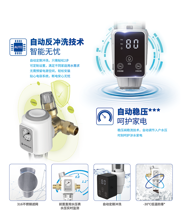 ***進(jìn)水壓力不超過0.5MPa時,前置過濾器可自動減壓和穩(wěn)壓。
